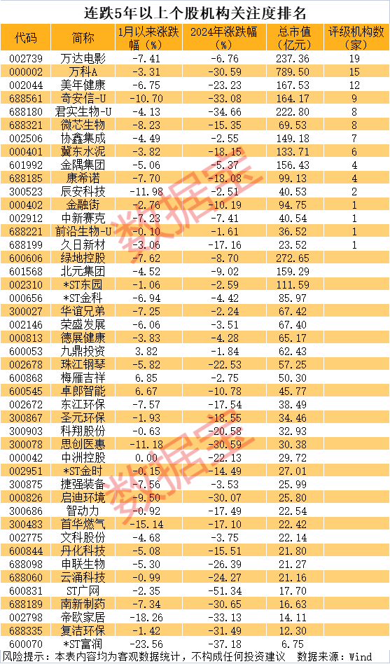 45股股价连跌5年
