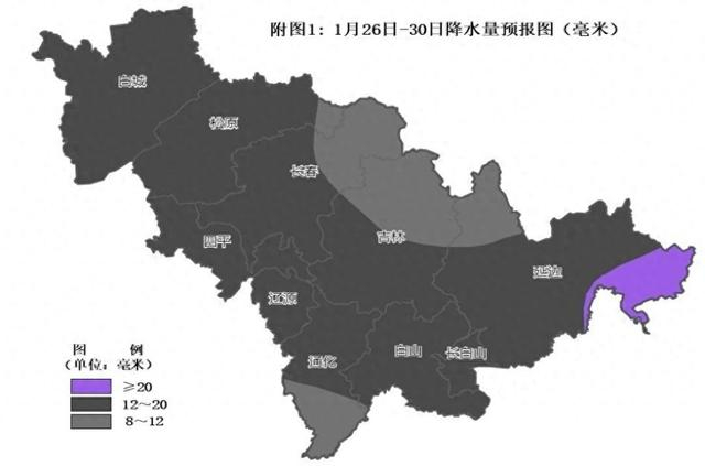 2025年1月26日午后到1月27日早晨,白城、松原、长春、四平有小到中雪,其他地区有小雪。