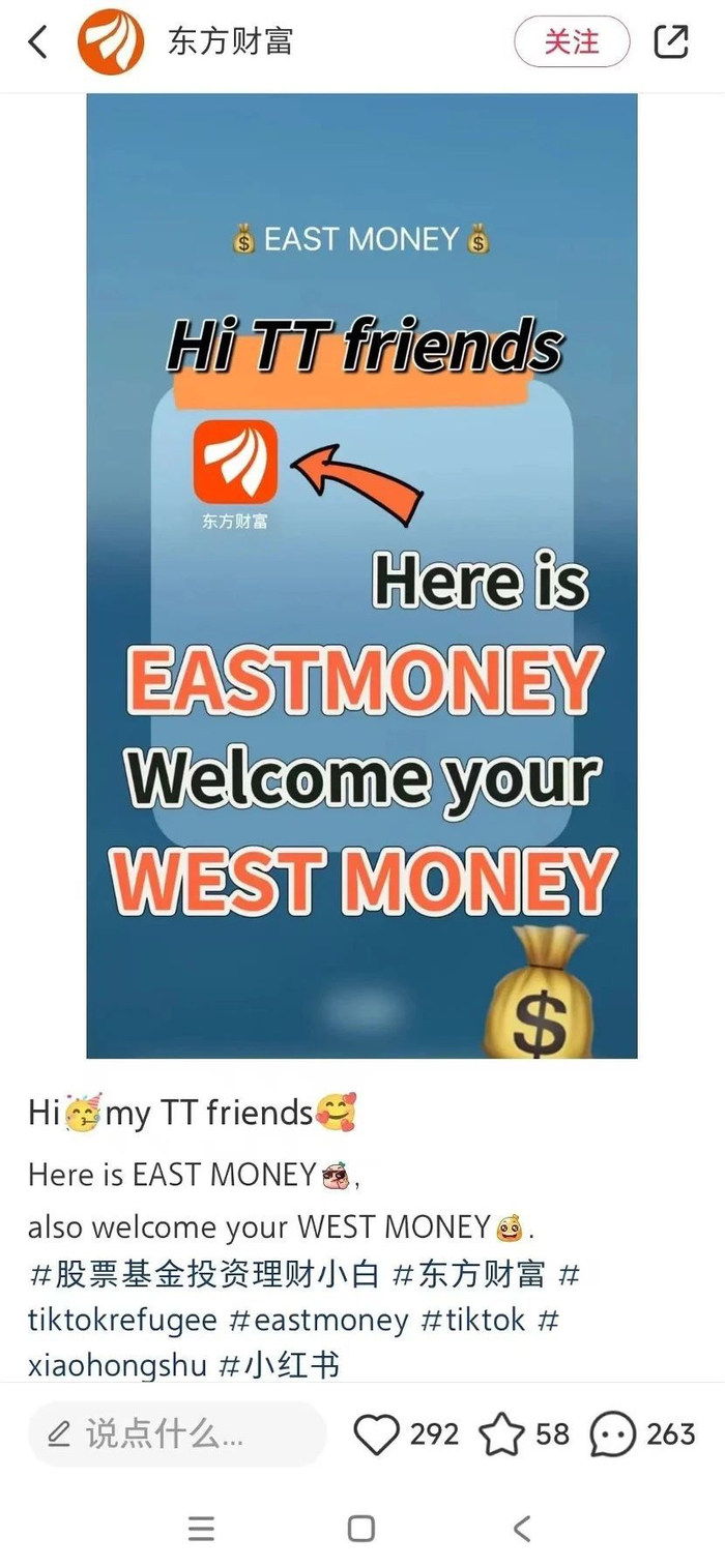 东方财富小红书最新一条英文笔记开始花式玩梗,发帖表示:“这里是东方财富。也欢迎你,西方财富。”此条笔记引得评论区互动不断,并借此机会宣布取得我国永久居留身份证的外籍人员可以直接在东方财富线上开户。