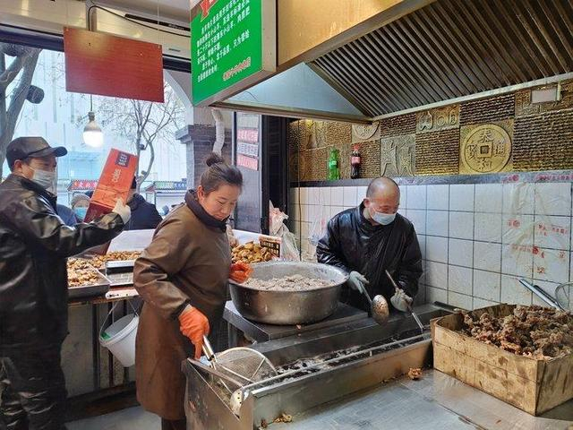北顺城街上,锋国牛羊肉老店外长长的队伍已经成为街头一景,姚锋国和工人们的忙碌还在继续!相隔不远的开封丹记元宵、五顺斋烤鸭、郭记烧鸡门前,汇聚着喜气盈盈购买年货的市民,浓郁的烟火气息和年味在老街道里交织、升腾,老郑州的“老味道”将再一次端上年夜饭的餐桌。