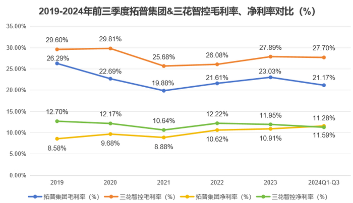 从成本占比来看,据 2023 年财报显示,拓普集团汽配业务的直接原材料成本占比高达 77.6%;三花智控营业成本中也有73.6%来自原材料,本质上两者赚的都是辛苦钱,都需要依靠高效的成本管控能力实现可持续性的盈利增长。