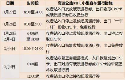 春节期间,全省收费公路对7座以下(含7座)小型客车免收通行费,免费时段是1月28日0:00至2月4日24:00。