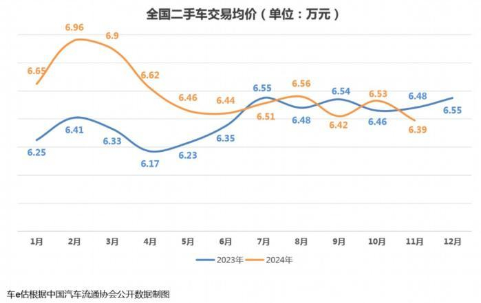 随着今年三季度以旧换新政策的实施,二手车库存有所缩短,但整体来看仍处于较高水平。以2024年11月为例,二手车商的平均库存周期为48天。陆广智表示,临近年底,经销商加大清库力度,采取让利促销措施,以此激发市场活力。同时,新车价格持续下滑,交易价格受到的影响也比较大。