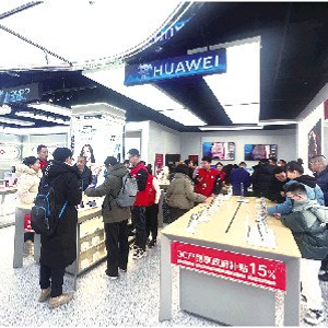 在济南泉城路苏宁易购pro超级旗舰店内,各品牌柜台前挤满前来选购手机、平板等3C产品的消费者,到店咨询的顾客更是络绎不绝。