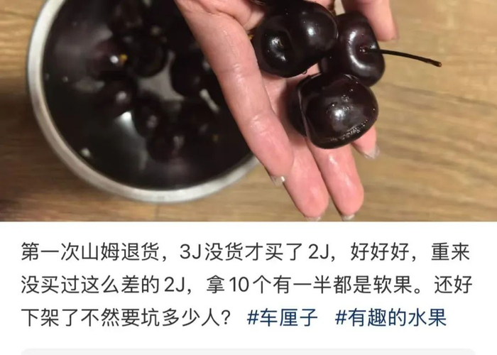 "买10斤坏3斤!"多名消费者爆料山姆的车厘子中混有很多坏果