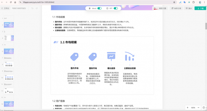 我们可以像写word一样写你的内容,ai会自动生成PPT,或者是你可以像编辑word一样编辑已经生成好的内容。