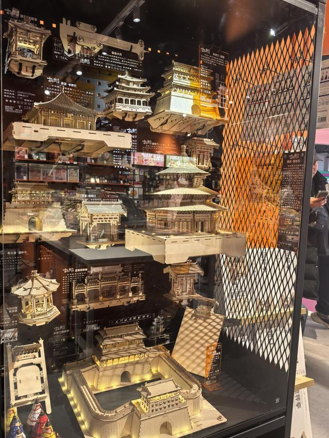 带孩子逛街的李女士看中了一款AR趣味考古盲盒。“孩子平时就喜欢盲盒,这里面有四羊方尊、青铜犀尊等,隐藏款也是镇馆之宝,还能扫码看介绍,既好玩又长知识。”李女士还对中国古建系列的木制拼插模型很感兴趣,“可以亲手拼流杯亭、垂花门,感受古建的魅力。”