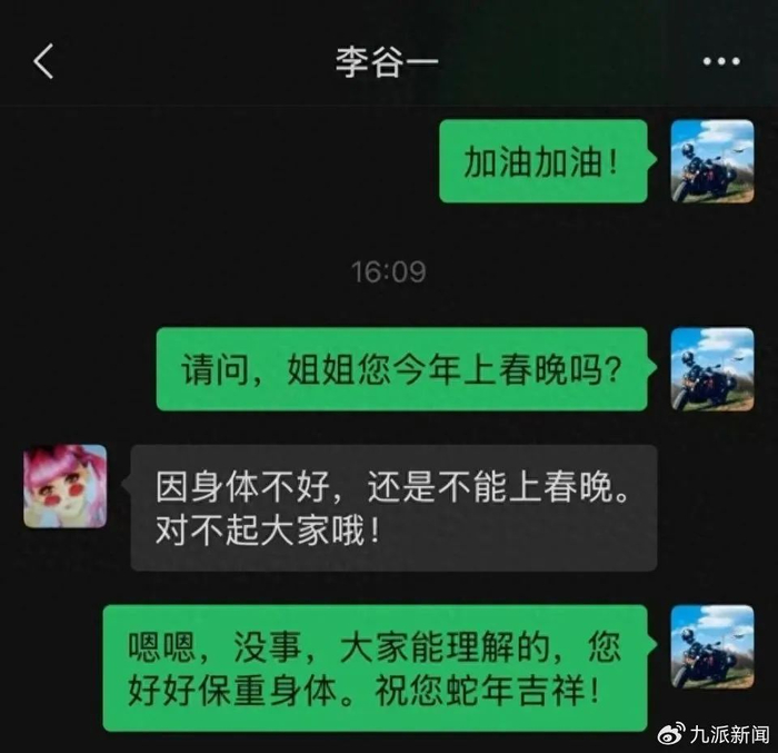 李谷一为缺席春晚表示歉意,她称:“因身体不好,还是不能上春晚。对不起大家哦!”