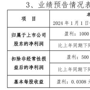 1月23日晚间,酒鬼酒公布了其2024年度的业绩预告。内容显示,公司预计2024年实现归母净利润为1000万元至1500万元之间,这一数字相比去年5.48亿元大幅度下滑,降幅在97.26%至98.17%之间。同时,公司预计扣非净利润将在500万元至750万元之间,与去年5.38亿元相比下降幅度更为显著,达到了98.61%至99.07%。此外,公司还预计基本每股收益将在盈利0.031元至0.046元之间。