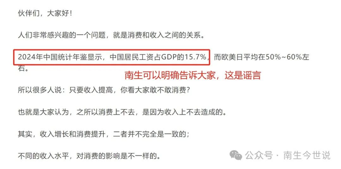 近期,网络上又出现了一个谣言,大意是:依据国家统计局发布的《2024年中国统计年鉴》报告来推算,中国居民的工资总占GDP的比例仅仅只有15.7%,而美日等国的比例却超过了50%。