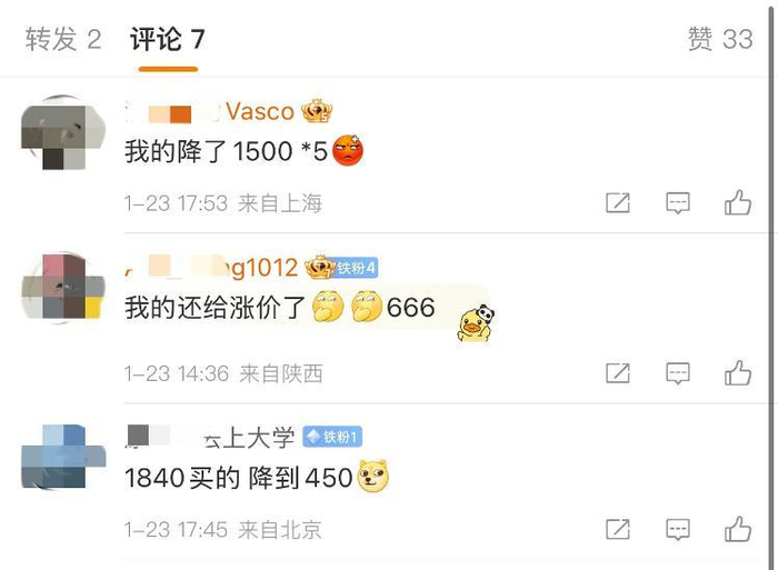 不少网友表示:“想着后面买机票会比较贵,没想到提前买的机票竟然降价了”;网友****vasco表示“我的降了1500*5”,还有网友***要去上大学表示“1840买的,降到了450”。