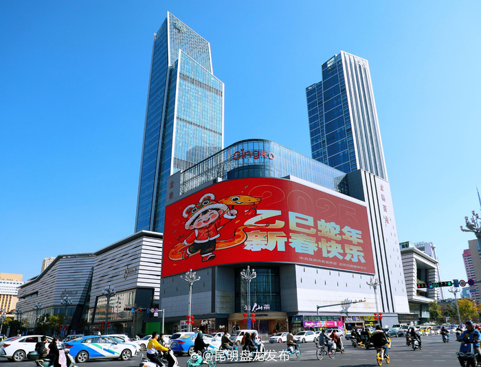 此外,辖区内各类LED大屏滚动播放着春节宣传海报与标语。“恭祝春城人民新春快乐”“灵蛇迎春”等字样高频次地出现在人们的视野中,让喜庆氛围更加浓厚。