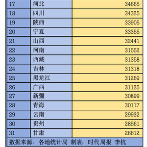 31省份人均收入账单出炉:8省份跑赢国家线,广东加入“5万元俱乐部”