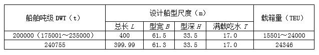 ②集装箱码头设计标准以船舶吨级(DWT)对应的设计船型尺度为控制标准,其载箱量为参考值;