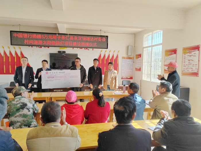 12月4日,中国银行为永仁县永定镇糯达村委会村间道路太阳能路灯项目捐赠现场。