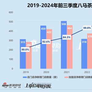 2024年1-9月,八马茶业的总营收和净利润分别录得16.47亿元、2.08亿元,仅较2023年同期增加0.6个百分点、6.1个百分点。其中,向加盟商销售收入约为8.18亿元,与2023年前三季度相比只微增0.2%;对总营收的贡献约为49.7%,同比不升反降0.2%。