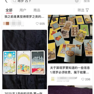 记者了解到,塔罗牌占卜、占星术解读等服务在社交媒体上随处可见。记者在小红书上以“塔罗”“占卜”为关键词进行搜索,发现有上百万篇相关笔记;在电商平台上,主营塔罗占卜、星盘分析的相关店铺也不少,单次占卜价格从几元到上千元不等。在社交平台上,一些博主凭借占卜技巧和解读风格吸引了很多年轻粉丝,知名塔罗牌占卜师一场线上直播的观看人数更是可观,甚至需要提前预约。