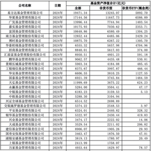 2024年,有近50家基金公司非货管理规模出现了下滑。