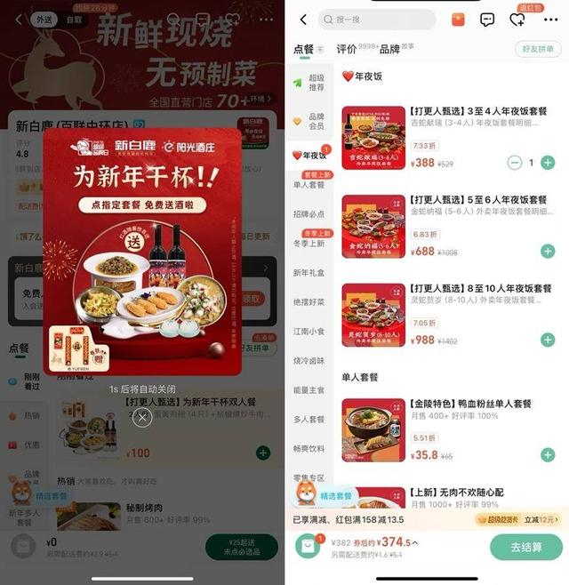 “年夜饭”搜索增长350%,饿了么联合南京大牌档等多品牌开启年夜饭外卖预订服务