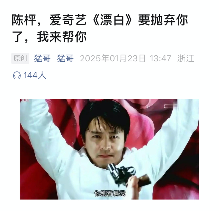 王猛并未停下脚步,23日他再度发文《陈枰,爱奇艺〈漂白〉要抛弃你了,我来帮你》,嘲笑剧组是“草台班子”,并质疑剧方是否有正规制作单位,甚至列举出了陈枰二十多年来的“抄袭事迹”。
