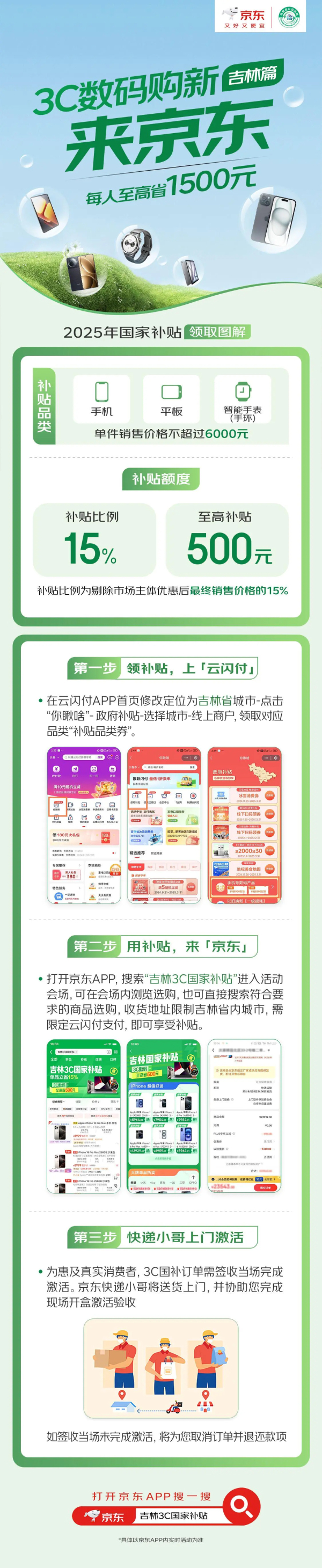 吉林手机“国补”落地京东 换新手机、平板、智能手表可省1500元