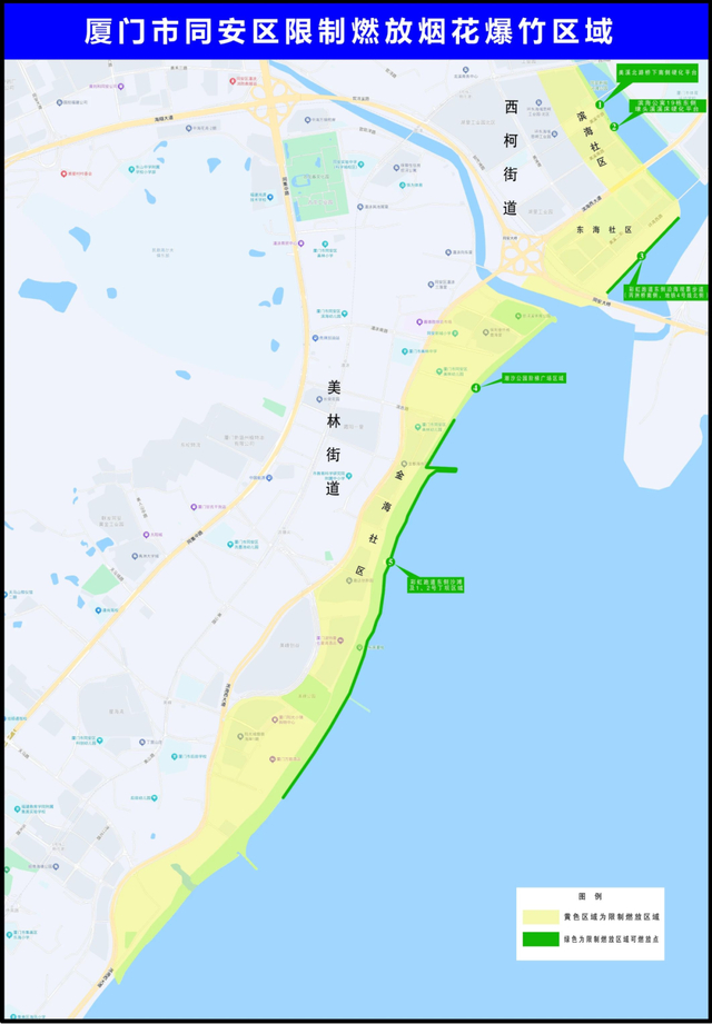 海沧区限制燃放区域内,共设立10个燃放点: