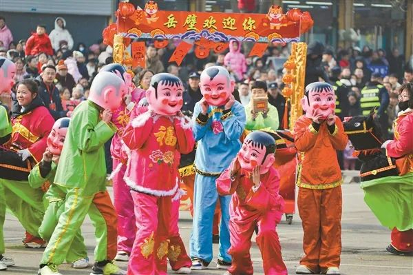 平遥县岳壁乡大头娃娃社火表演。