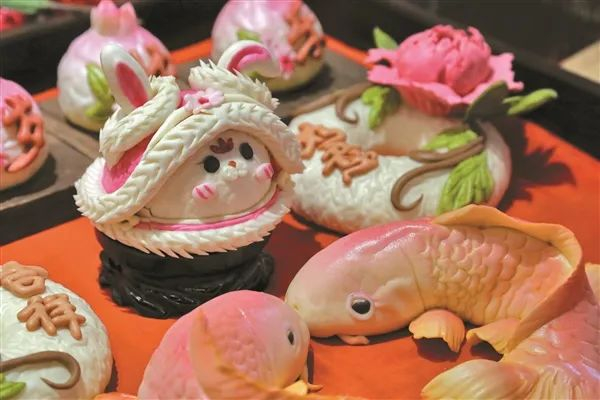 造型各异的传统花馍。