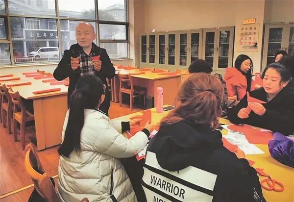 游洋老师给学生们示范剪纸技巧。
