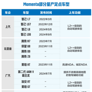 突围“大逃杀时刻”,Momenta的特质在于“朋友圈够大”,已经揽获自主、合资和跨国车企的多个定点项目,行业内称其为“最不缺量产项目的方案商”。Momenta的“朋友圈”覆盖上汽、比亚迪、广汽、东风日产、长城、广汽丰田、奔驰等数十家国内外车企,定点车型预计会超过100个,其中已量产车型26款。