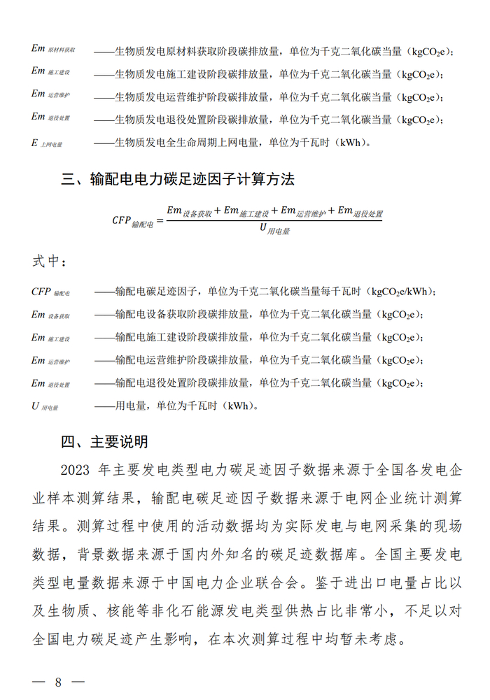这一数据是基于多种发电类型(包括燃煤发电、燃气发电、水力发电、核能发电、风力发电、光伏发电、光热发电、生物质发电和输配电)的碳足迹因子计算得出的加权平均值。