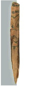 桃人,也叫桃梗,是用桃木削刻而成的人形木偶。《战国策》中记录了桃梗和土偶人互怼的一段对话。桃梗取笑土偶人说:“你是人们用西岸的泥土堆成的。到了八月的大雨天,淄水上涨,你就自身难保了。”土偶人不甘示弱,说道:“就你好!你是人们用东国的桃梗削成的。淄水上涨,你随波逐流,还不知道被冲到哪里去。而我化为泥,还是会回归岸上。”可见,在战国时期,人们就开始制作桃人,用作祭祀等目的了。现代出土的居延汉代木简中,也有“人面桃符”,上绘人形,长26.7厘米、宽2.6厘米,下端尖锐,可以插在门前的地上,可能就是《战国策》中提到的桃梗。