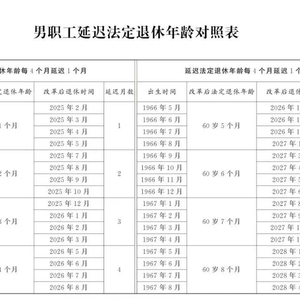 从2025年1月1日起,正式启动法定退休年龄渐进式延迟: