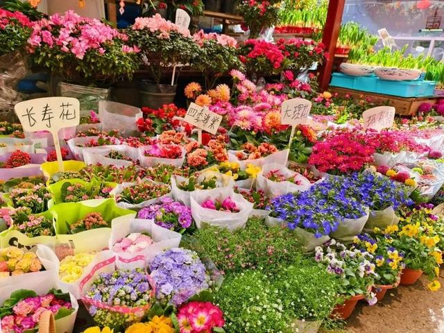 在虹桥花卉市场,各色花卉争奇斗艳,繁花似锦。