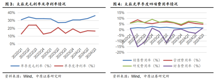 毛利率持续提升,重视研发投入。2024年前三季度,公司毛利率为33.78%,同比提高4.95pct;2024Q3公司毛利率为36.23%,同比提高8.72pct,环比提高3.68pct。公司持续致力于产品工艺优化及自动化水平的提升,主要产品保持较好的竞争优势,未来依然有望保持较好的毛利率水平。2024年前三季度,公司销售费用率、管理费用率、财务费用率、研发费用率分别-0.15pct、-0.97pct、+3.55pct、-0.29pct。2024年前三季度研发费用为0.61亿元,同比增长40.69%,研发投入主要用于新产品与新技术的研发,同时对生产自动化持续高投入。无源产品方面,公司推动光波导产品的升级与转型,提升MT插芯自研自产能力,扩充自产MT插芯的规格种类。同时,公司拓展光柔性板产品技术,产品应用由电信网络拓展至数据中心等场景。有源产品方面,光模块、AOC及配套产品的研发取得了一定进展,为产品线的丰富与升级奠定基础。