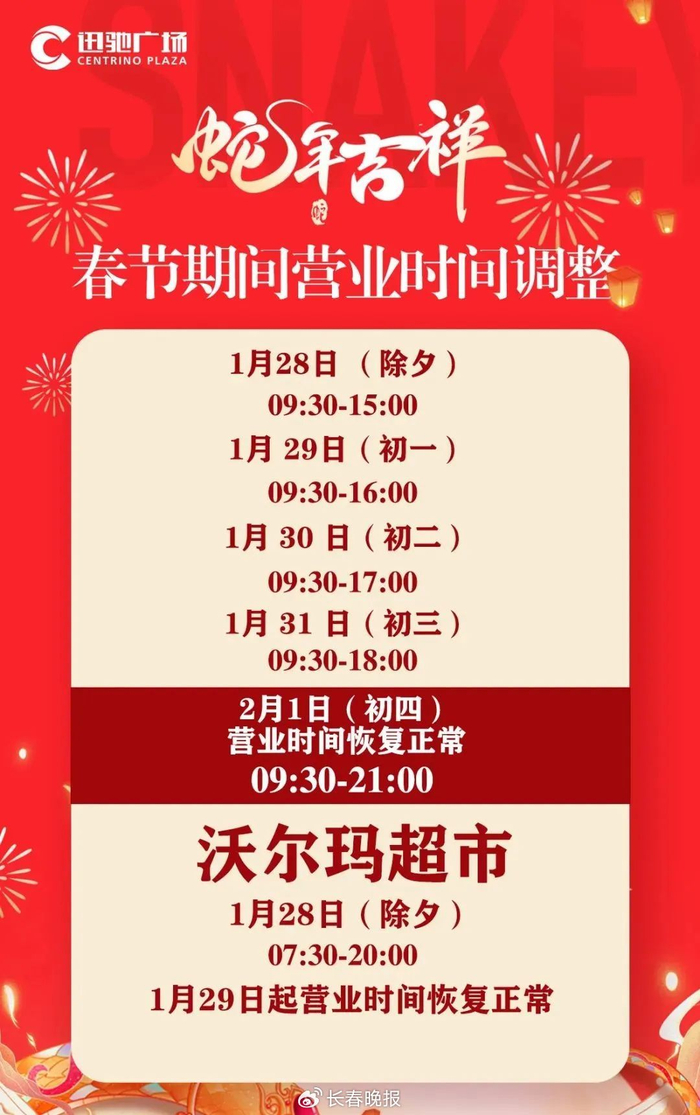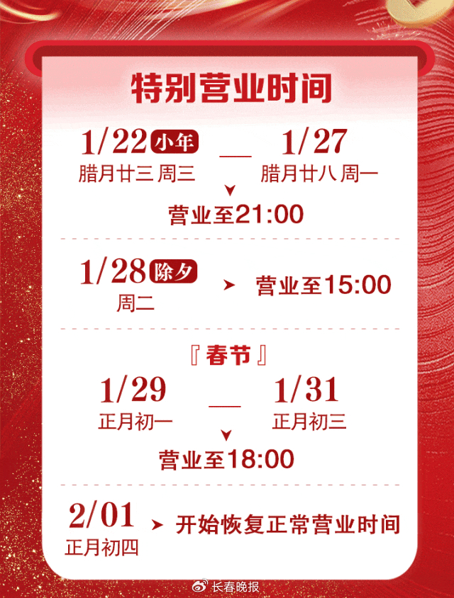 收藏!长春这些地方春节营业时间汇总!