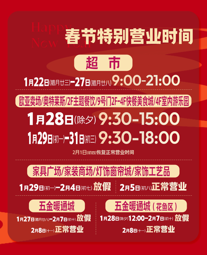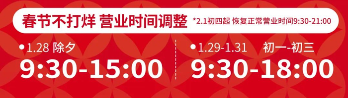 1月28日(除夕)营业时间