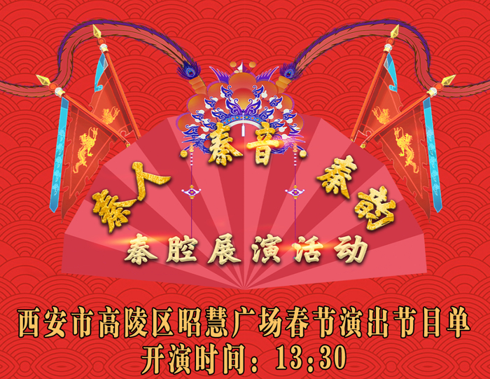 生旦净丑、粉墨登场,一招一式尽显古韵风采。西演・青年团联合西安高陵剧团和秦声飞扬剧社等,从1月22日至1月31日(腊月二十三到正月初三)在西安市高陵区昭慧广场举行盛大的秦腔展演活动,用激昂的秦腔唱腔、精彩的表演,让秦腔真正来到老百姓家门口,让市民游客免费听到古城西安最纯正的秦声。