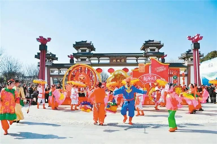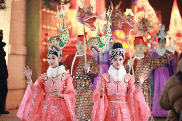 “快来尝尝糖葫芦,甜丝丝的!”走进西安千古情景区,摊主的叫卖声、孩童的嬉闹声此起彼伏。在这里,随处可见身着汉服的“穿越者”,游客们穿梭其中,与“李白”对酒当歌,看“贵妃”翩翩起舞,和“兵马俑军团”击掌拜年,实现“历史可见,文化可触”的旅游新体验。