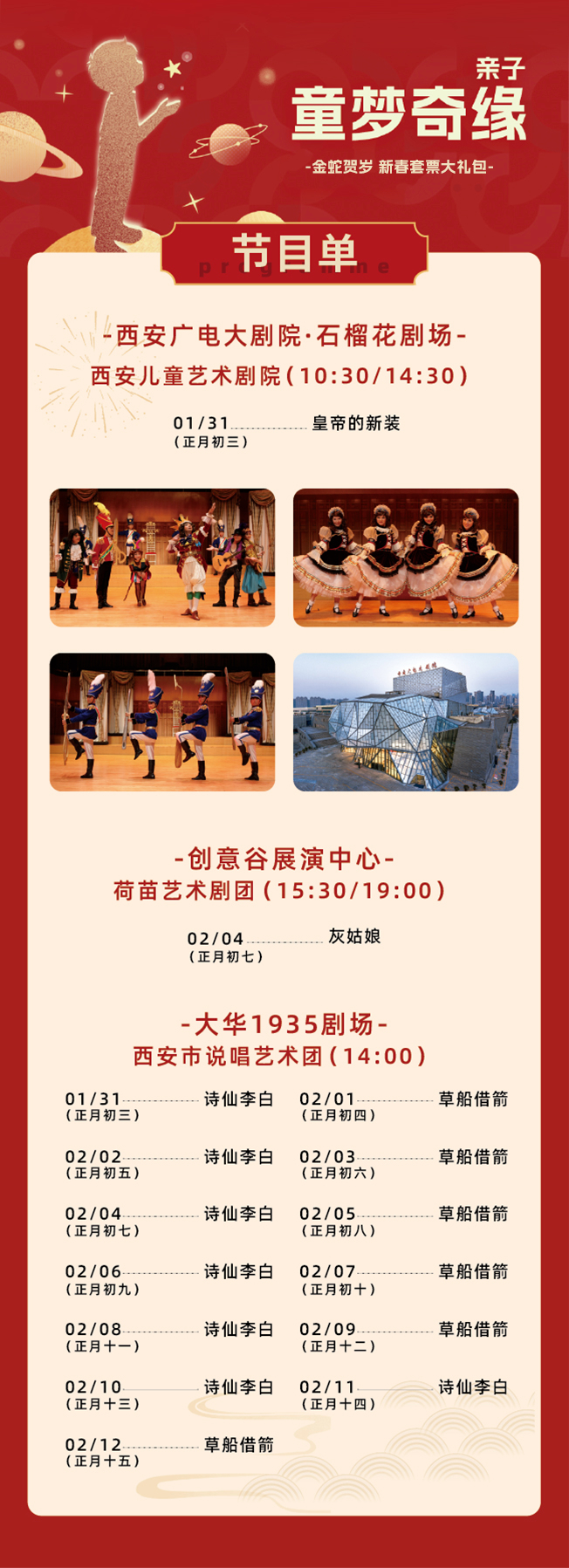 西安儿童艺术剧院与荷苗艺术剧院,在西安广电大剧院·石榴花剧场和创意谷展演中心、渭南大剧院将为小朋友们演绎经典童话故事《皇帝的新装》《灰姑娘》《三只小猪》。西安市说唱艺术团在大华1935剧场还将带来“寓教于乐”的曲艺课本系列剧。