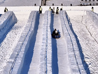今年在园区各处散落着20多条小滑梯,可以让大小朋友们共同体验冰上驰骋的快乐。