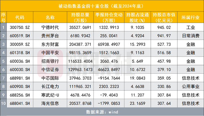 被动指数型基金持有宁德时代的仓位达到945.02亿元,占所有公募产品在宁德时代仓位的五成以上。