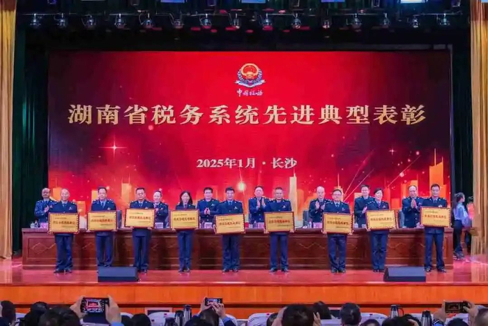 会议表彰2024年度湖南省税务系统荣获省部级以上荣誉先进代表、“湘税八大行动”优秀单位、绩效管理先进单位、税费运行“一体化”监管专项工作表现突出单位和个人、2023-2024年度星级办税服务厅。