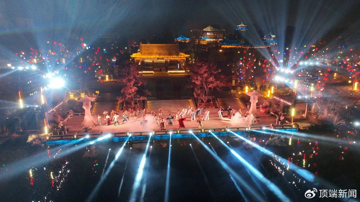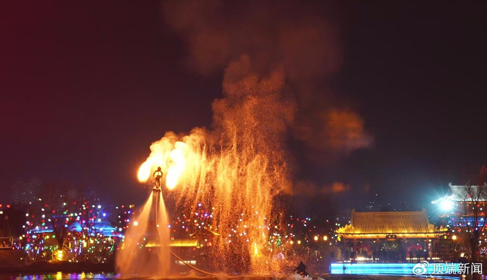 夜幕降临,庙会呈现出另一番迷人景象。三顾广场的灯光秀《梦回三国》,将绚丽灯光与三国元素巧妙融合,打造出如梦如幻的视觉盛宴;天下第一岗亢龙潭的水幕光影秀《龙腾天下》,水幕与光影相互交织,配合震撼的音乐与特效,一条巨龙在水幕中腾飞而起,场面震撼人心;夜场重磅节目“微春晚”《只有南阳》,节目涵盖精彩的打铁花、水上火壶、火魔方等多个非遗绝技,“姜子牙”携“众仙归位”“四圣”穿越,讲述南阳的传奇故事;三顾茶舍的非遗表演皮影戏,则让游客近距离领略到传统民间艺术的独特韵味。