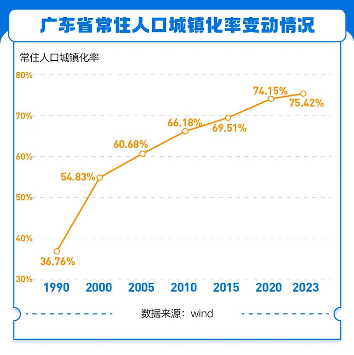 数据如此,但穿透来看,广东城镇化下半场空间仍然很大,将为广东经济持续增长继续提供澎湃动力。