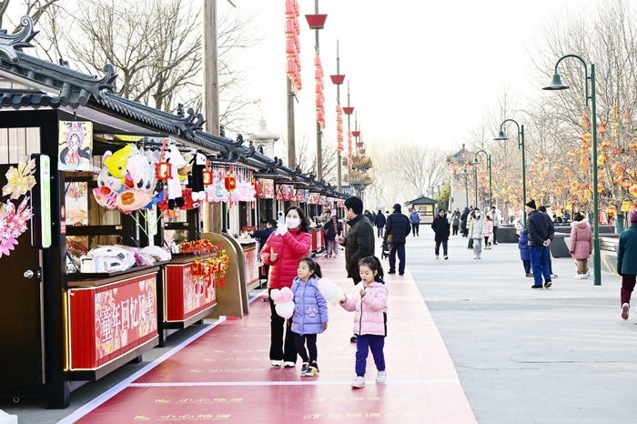 近日,以“国潮”为主题的“大运河新春游园会”及运河大集在大运河文化旅游景区漕运码头盛大启幕。今年大运河新春游园会包含漕运码头、燃灯塔及周边古建筑群和柳荫广场三个区域。漕运码头作为主会场,开园时间最早,从小年开始至正月十五。燃灯塔及周边古建筑群和柳荫广场新春游园会大年初一开园,持续至正月十五。此次大运河新春游园会是北京市五大庙会之一,现场装饰红红火火,透着浓浓的年味儿。游园会推出非遗市集、游戏比拼、特色美食、互动打卡、DIY手工等系列活动,让大家一次玩儿个够。