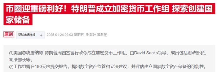 自本周一上任以来,美国总统特朗普一直在推动有利于加密货币的政策。周四的时候,他签署行政令成立了一个加密货币工作组,该工作组将包含多位关键内阁成员。