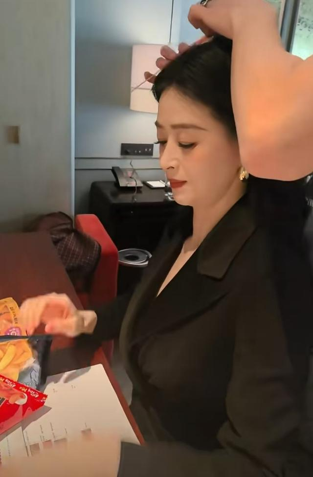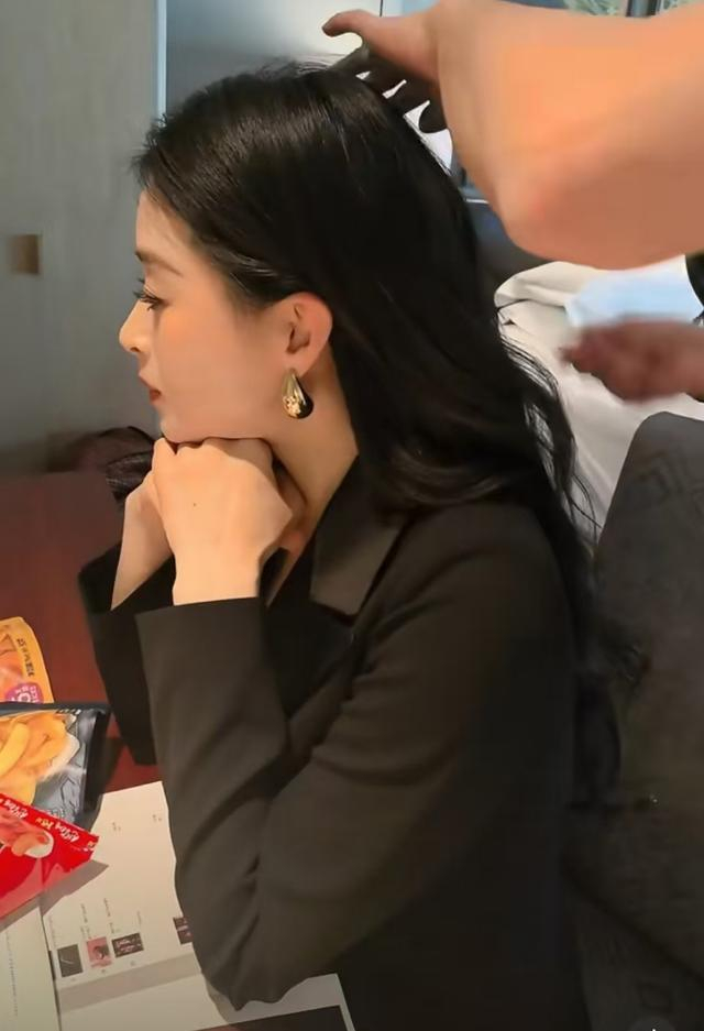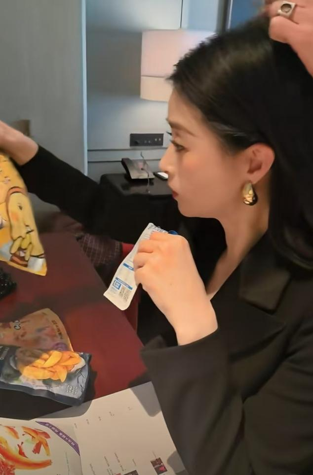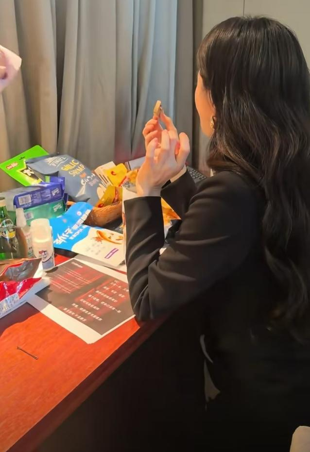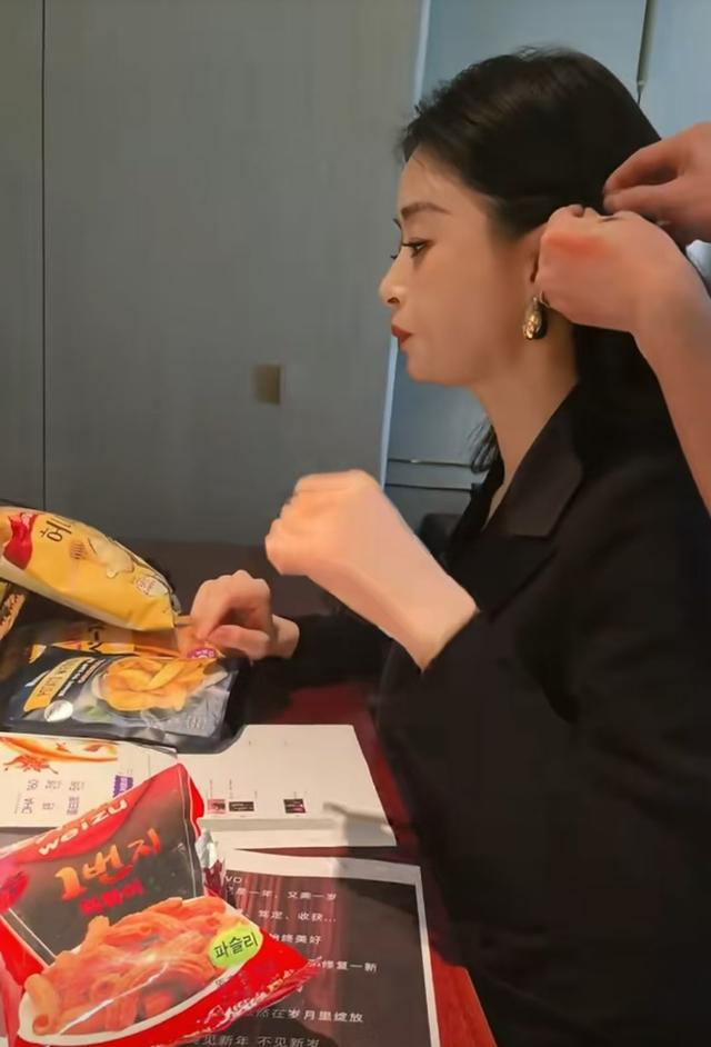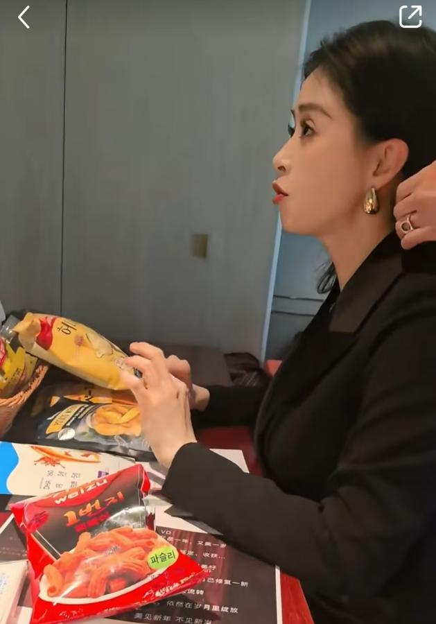 在发型师忙碌的间隙,蒋欣的目光被桌上的零食吸引。只见她先是小心翼翼地拿起一块小饼干,迅速放入口中,咀嚼时脸上露出满足的神情。紧接着,她又伸手拿起一包薯片,熟练地撕开包装,一片接一片地往嘴里送,那模样仿佛这些零食是世间最美味的佳肴,吃到根本停不下来。