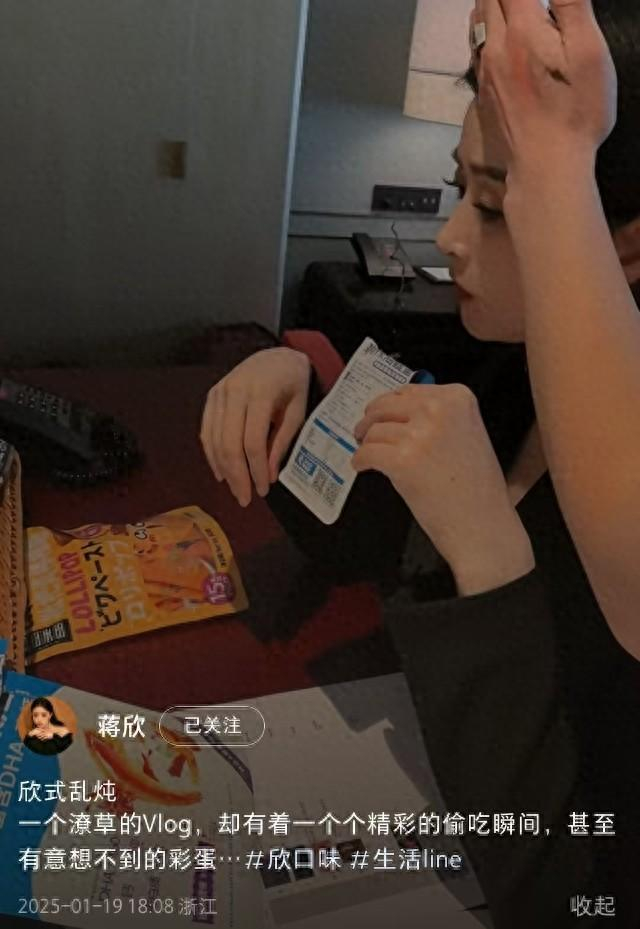 1 月 19 日,蒋欣如往常一样打开社交平台,与粉丝们分享生活。这一次,她上传了一段标题为 “一个潦草的 vlog,却有着一个个精彩的偷吃瞬间,甚至有意想不到的彩蛋” 的视频。熟悉蒋欣的人都知道,近两年来,她一直致力于减肥和控制饮食,所以这条 vlog 中频繁出现的偷吃零食画面,显得格外有趣。