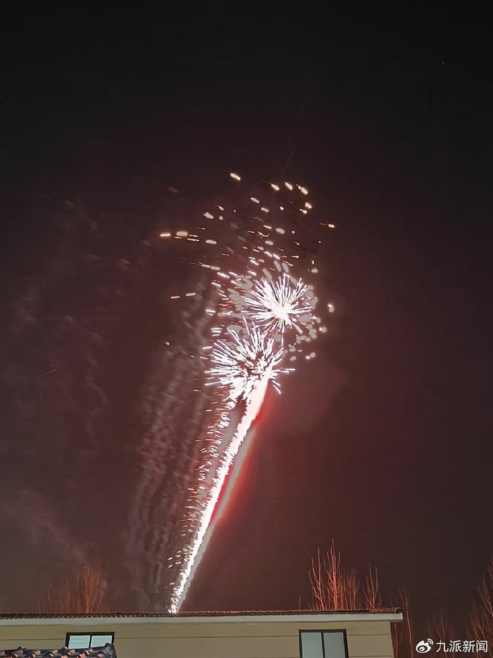 2024年春节,聪聪和父母一起在河南老家过年时拍摄的烟花。图/受访者提供